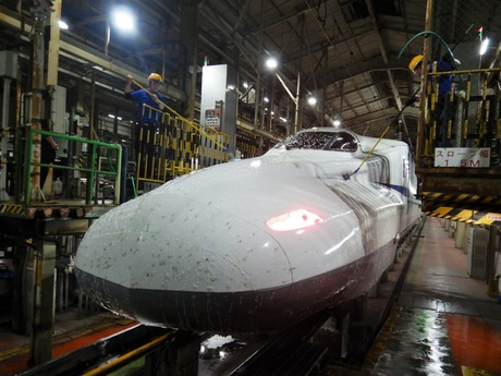 JR東海の新幹線車両基地内で、